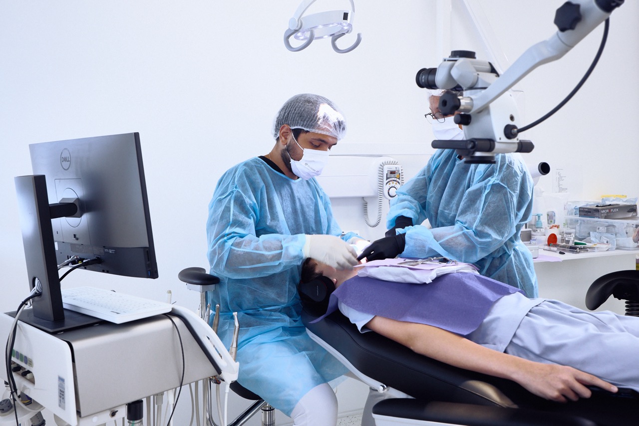 Chaque soin est réalisé sous microscope opératoire Carl Zeiss, garantissant une visibilité maximale et une grande précision dans les gestes techniques. Cet outil est indispensable pour le traitement des cas complexes, la recherche de canaux supplémentaires ou encore le retraitement de dents déjà soignées.